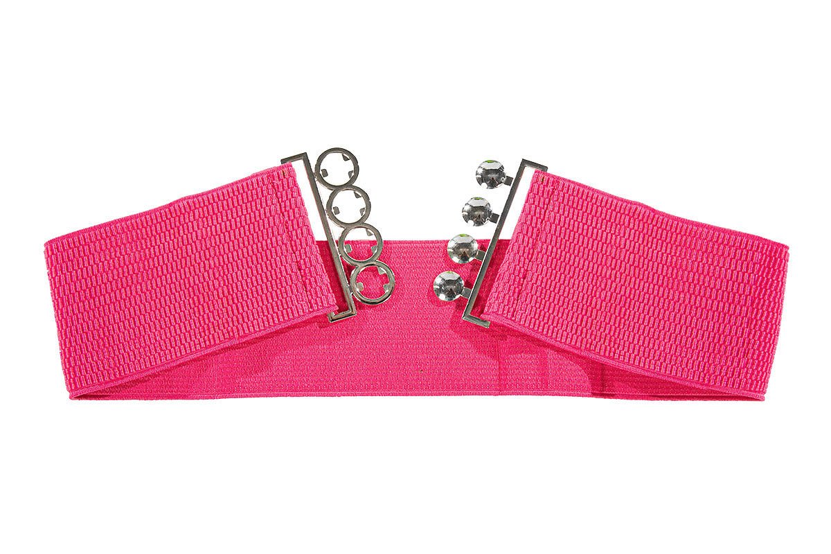 Simpatica cintura elastica di colore rosa con fibbia argentata. Perfetta come accessorio per feste, eventi a tema o abiti in maschera