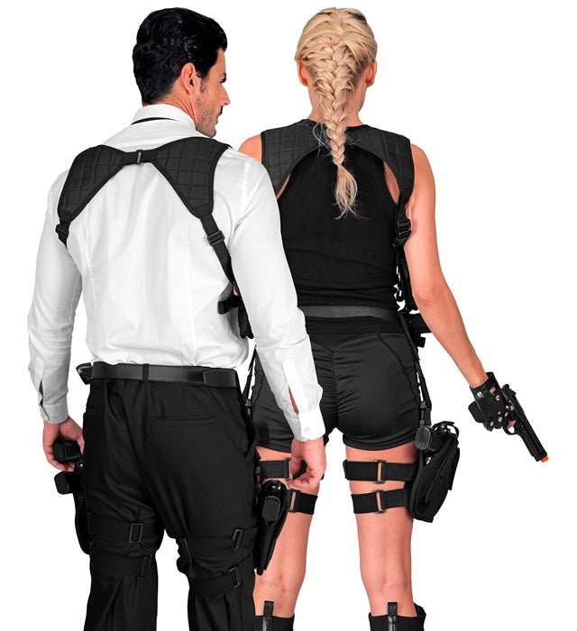 La fondina ha un aspetto duro e realistico e rimane saldamente in posizione grazie alle cinghie regolabili. Abbinala a un costume da poliziotto, da SWAT o da militare per un look da urlo