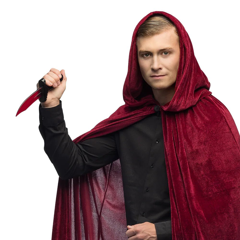 Il liquido rosso nella lama fa sembrare che il coltello sia ricoperto di sangue. Il design realistico rende questo coltello ancora più terrificante e quindi l'accessorio perfetto per un costume di Halloween o per un cosplay da assassino sanguinario, personaggi misteriosi o noti personaggi dell'horror.