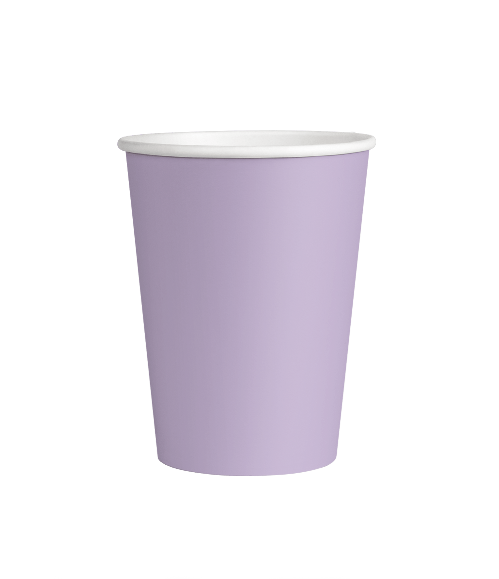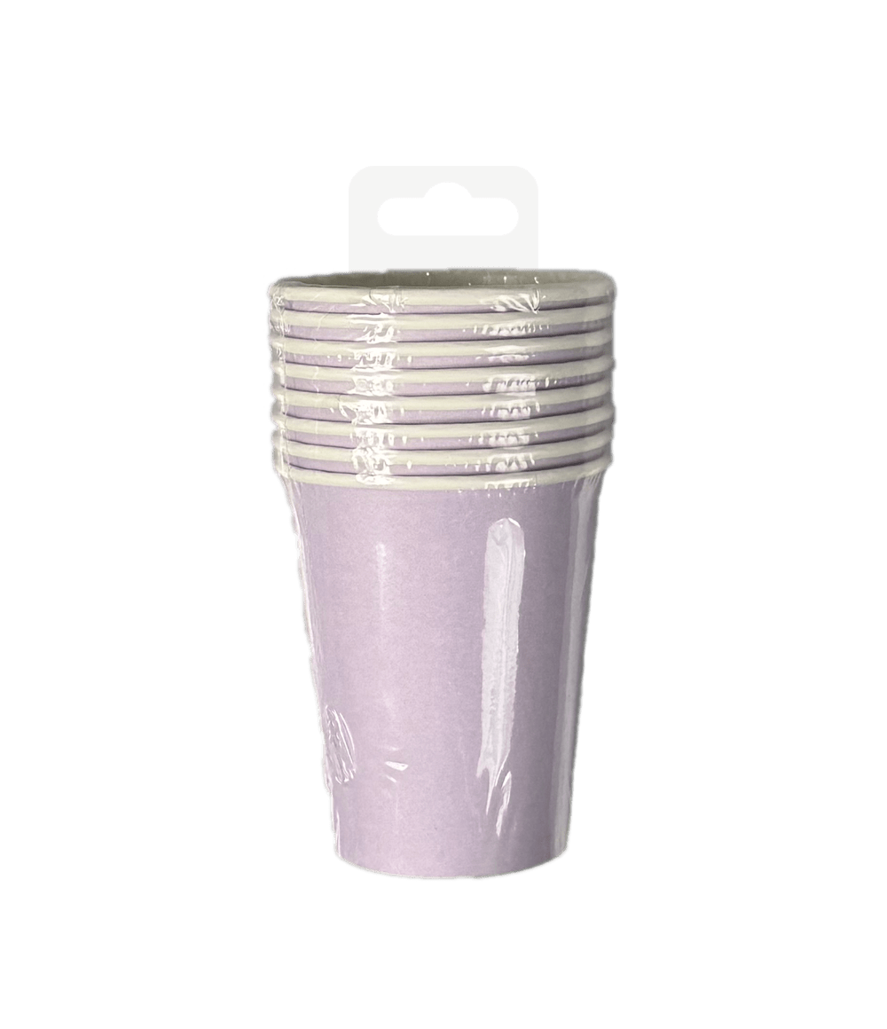 Le tazze - viola pastello sono l'elemento decorativo perfetto per una festa che ha come tema il colore viola pastello. Queste tazze misurano 8,5 x 7 cm, sono confezionate per 8 e si abbinano perfettamente agli altri articoli viola pastello come i coriandoli, i tovaglioli, i piatti, le tovaglie, le scatole per gli snack e la linea di bandierine. Presenta questi articoli insieme in modo che sia subito chiaro al cliente in cosa consiste questa collezione. Questi bicchieri sono realizzati in carta e sono quindi una scelta eco-compatibile