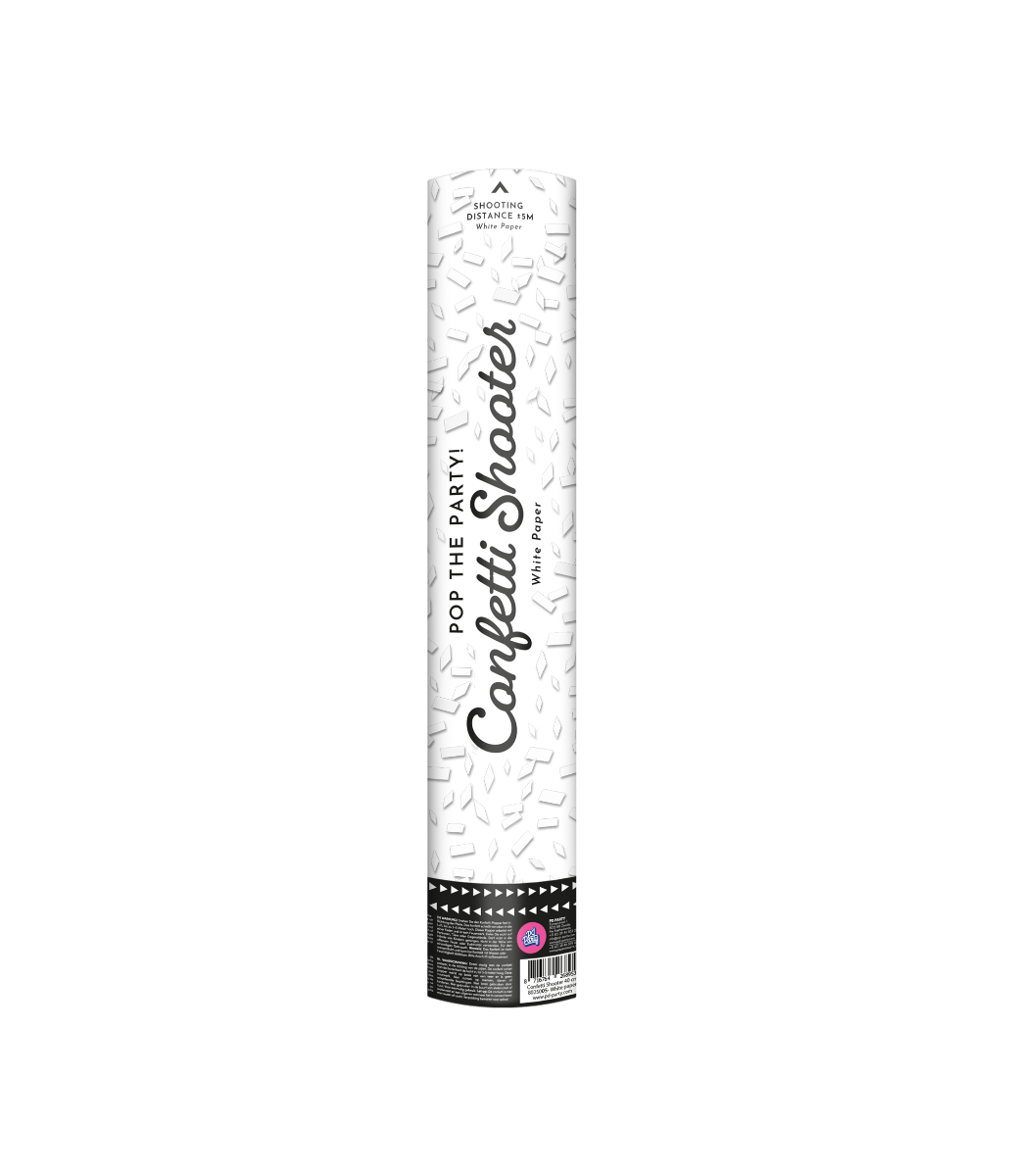 Dai vita a qualsiasi festa con questo sparacoriandoli da 40 cm! Questo spara coriandoli di carta bianca fino a 5 metri di distanza, creando un effetto festoso e spettacolare. Perfetto per compleanni, matrimoni, anniversari e altre occasioni di festa
