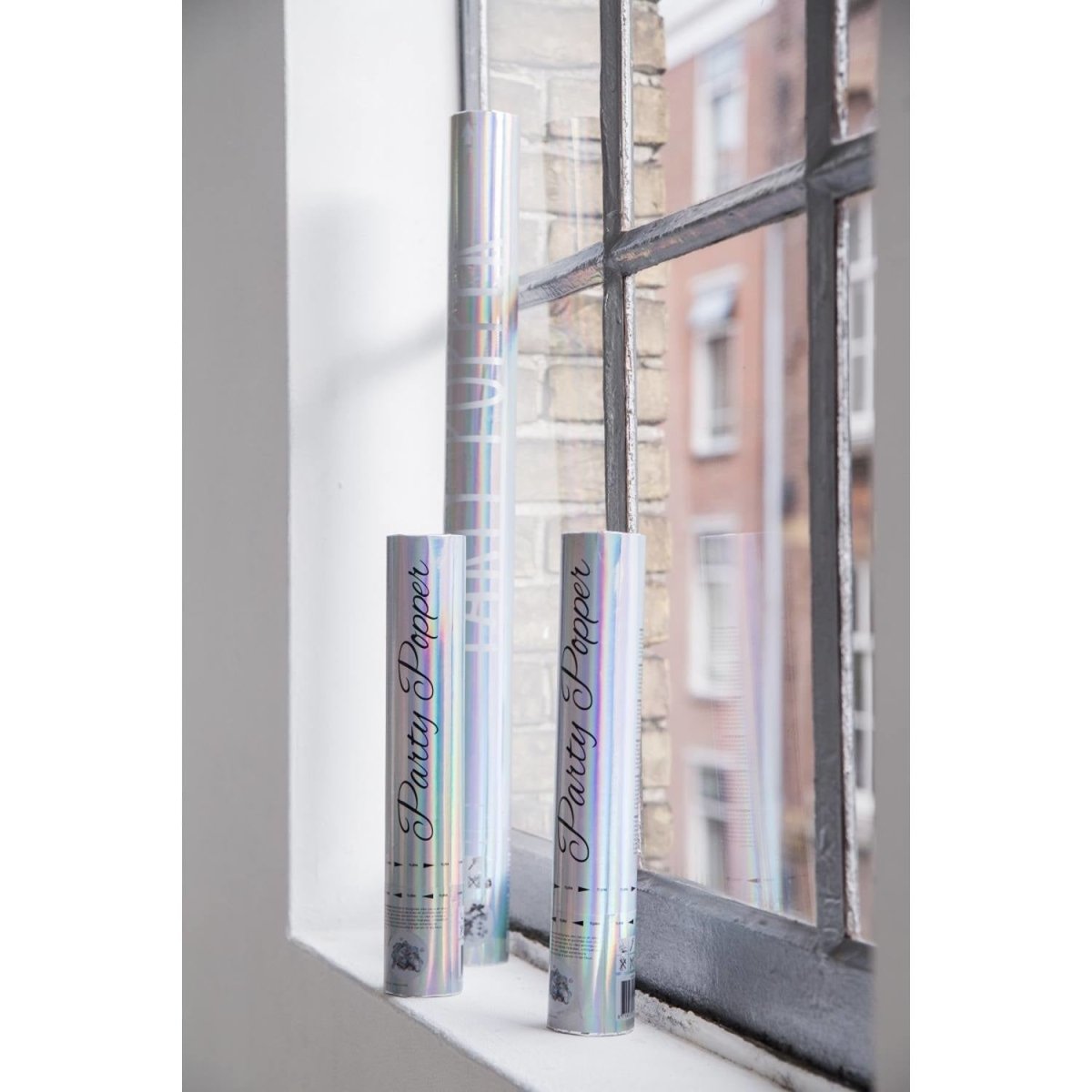 Cannone per coriandoli argento - 28cm. Contenuto: 1 cannone per coriandoli. Colore: argento. Da utilizzare per esempio durante le seguenti occasioni di festa: compleanno, festa per bambini e anniversario. L'articolo è lungo 28 cm. L'articolo è realizzato in plastica