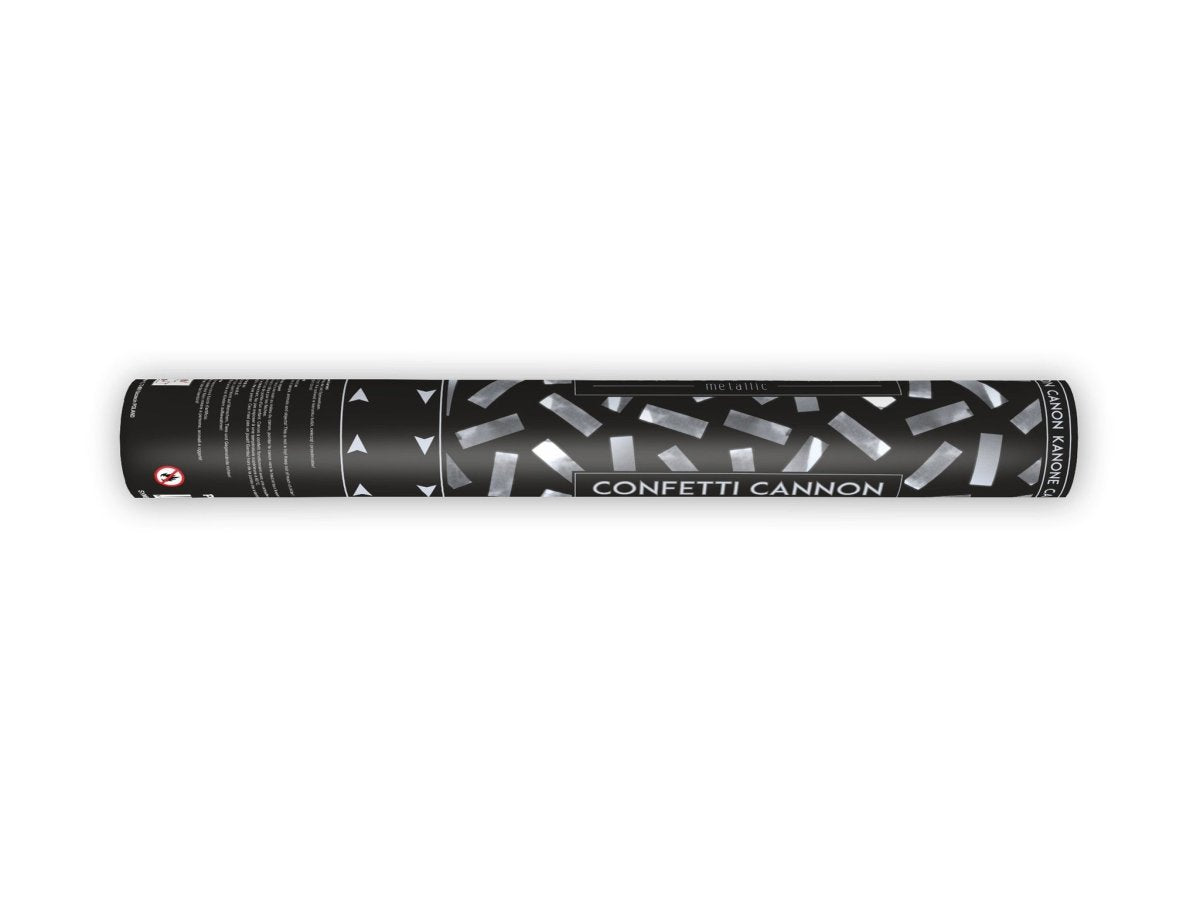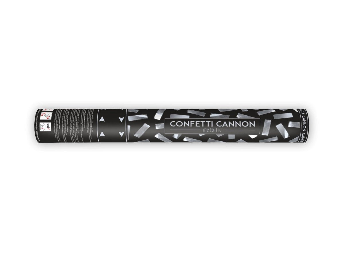 Contenuto: cannone spara coriandoli in metallo, argento, lunghezza 40 cm.
