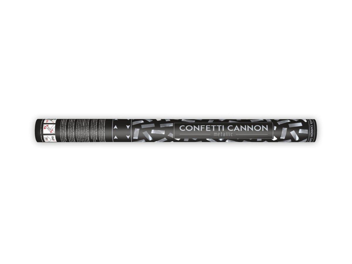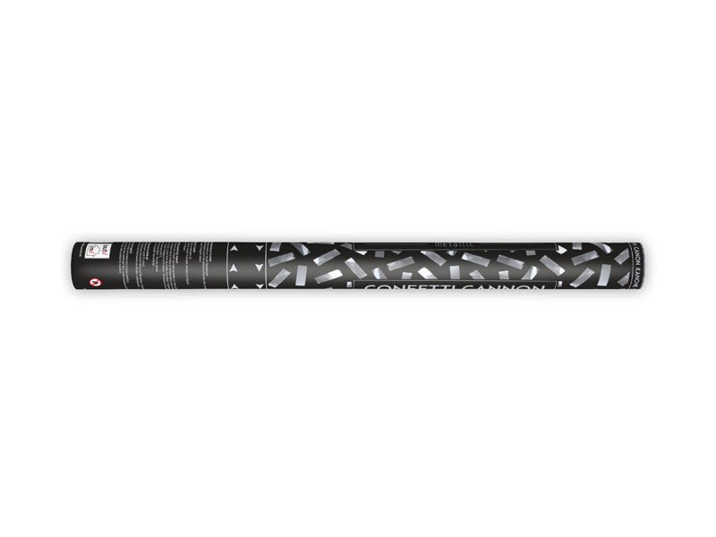 Contenuto: cannone spara coriandoli in metallo, argento, lunghezza 60 cm.