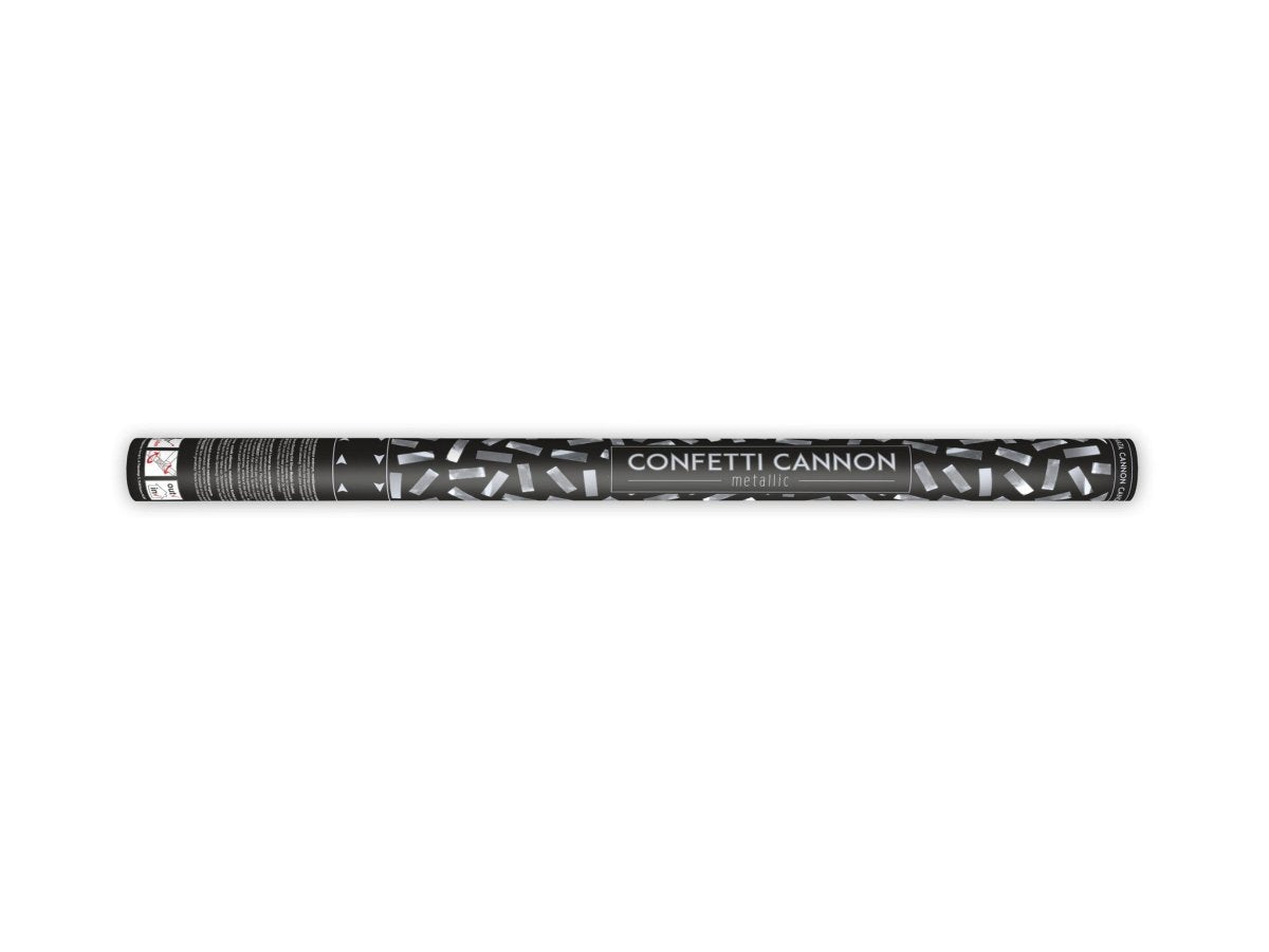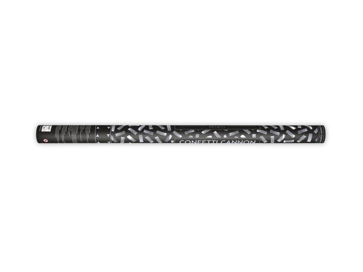 Contenuto: cannone spara coriandoli in metallo, argento, lunghezza 80 cm.