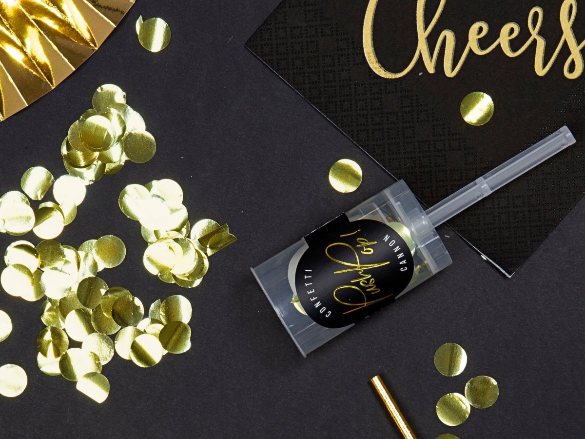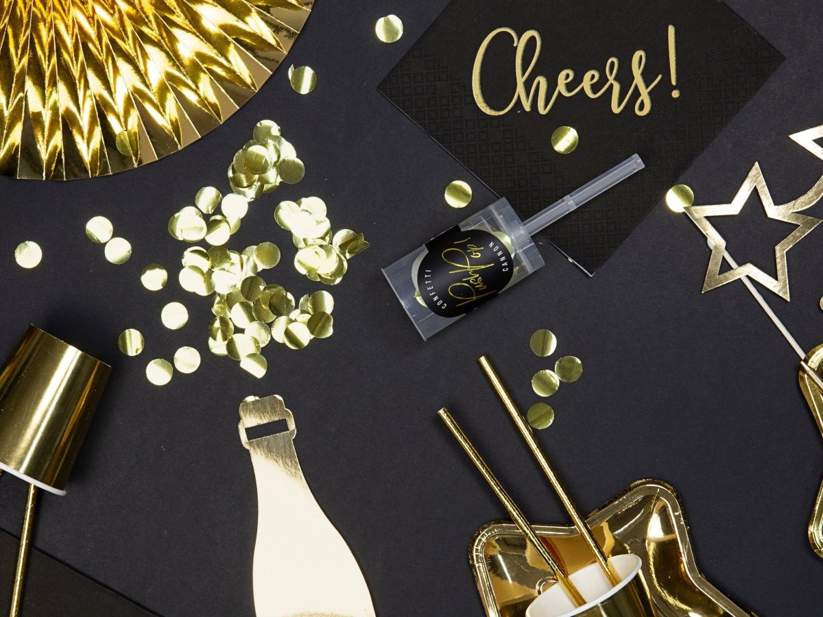 Contenuto: Coriandoli push pop, realizzati in lamina d'oro, diametro dei coriandoli circa 15 mm.