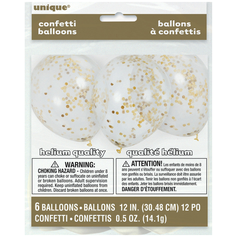 Palloncini a coriandoli oro 30,5 cm 6 pezzi