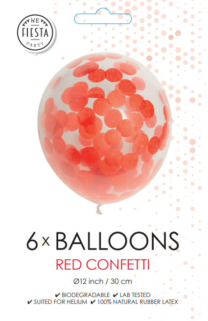 Contenuto della confezione:Palloncini a coriandoli rossi 30cm 6pz