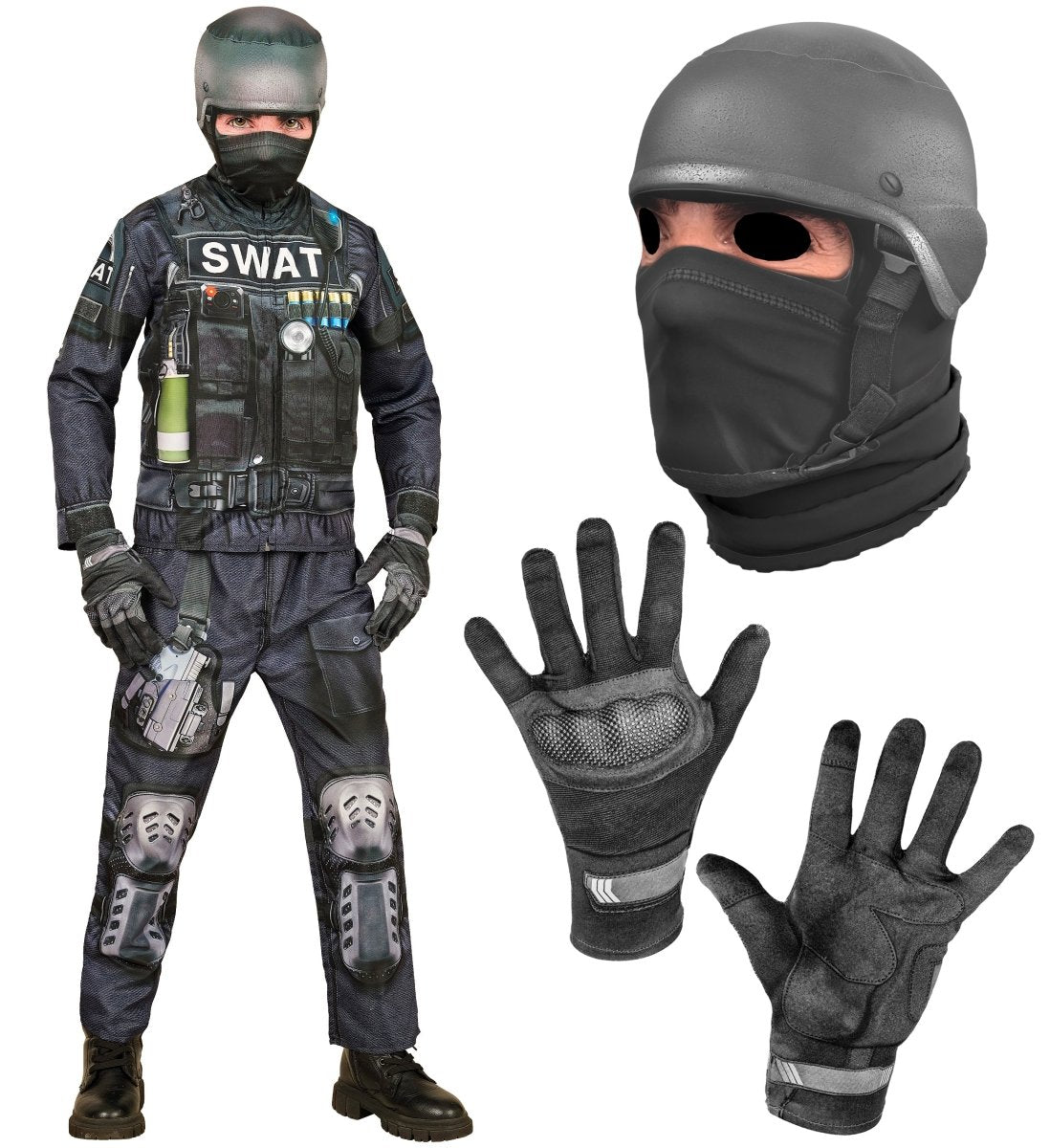 Descrizione Recensioni Informazioni su questo prodotto Lascia che il tuo piccolo poliziotto si dia da fare con questo costume completo da SWAT per bambini. Perfetto per feste in maschera, feste a tema o per Halloween. Contenuto della confezione: Giacca Pantaloni Handschoenen Maschera Doelgroep: Kinderen Trustpilot