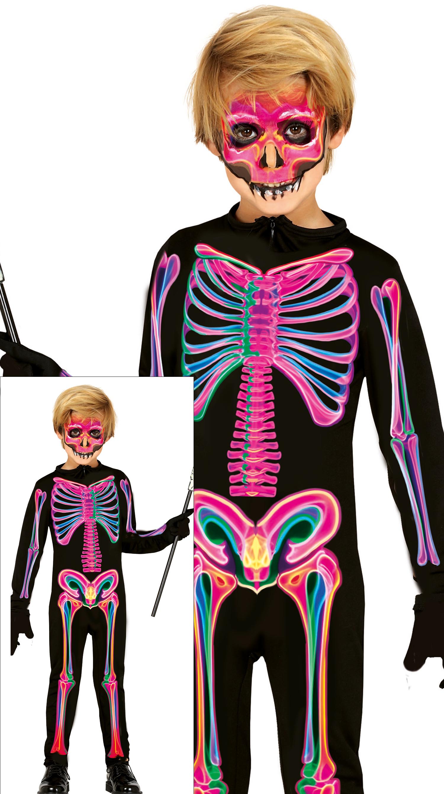 Costume Halloween Bambino Scheletro Neon