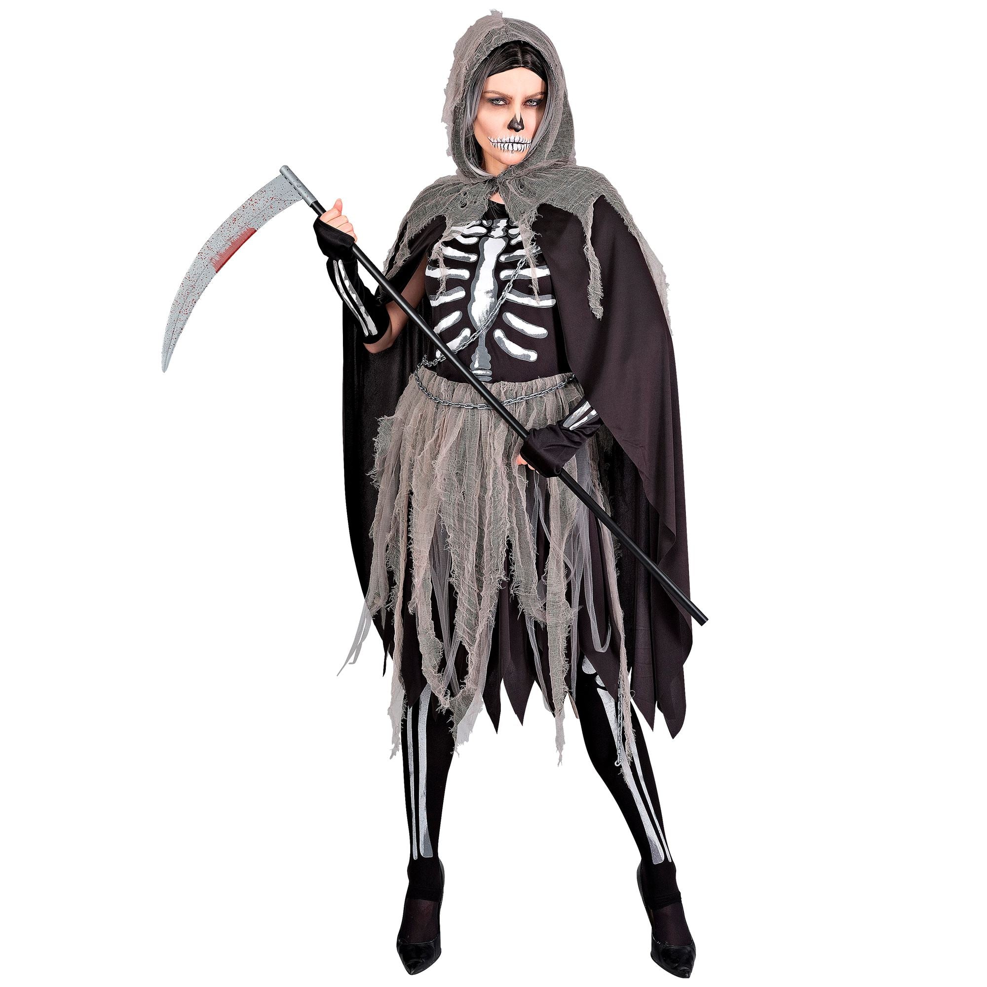Contenuto: vestito da scheletro, collant, guanti, mantello con cappuccio, collana