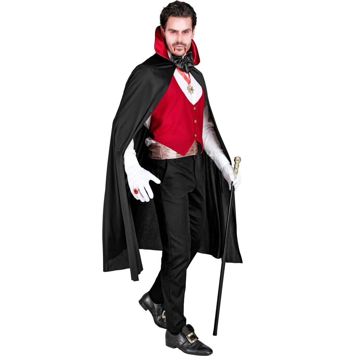 Costume di Halloween Vampiro nero rosso da uomo 4 pezzi