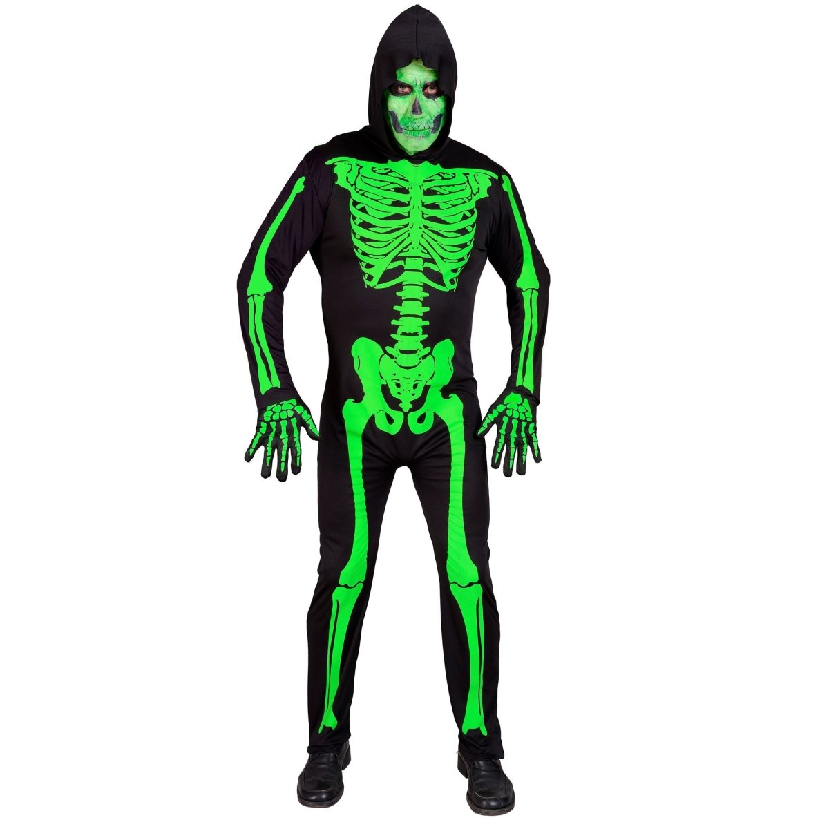 Costume di Halloween Nero Verde Uomo Scheletro 2 pezzi