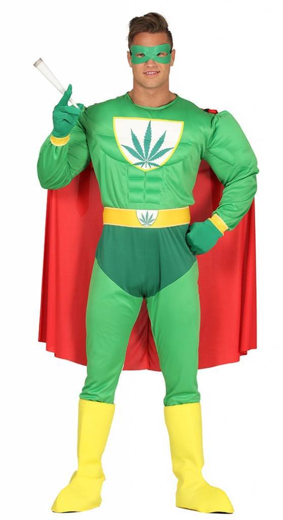 Contenuto: tuta da supereroe dell'erba, mantello, guanti, cintura e maschera