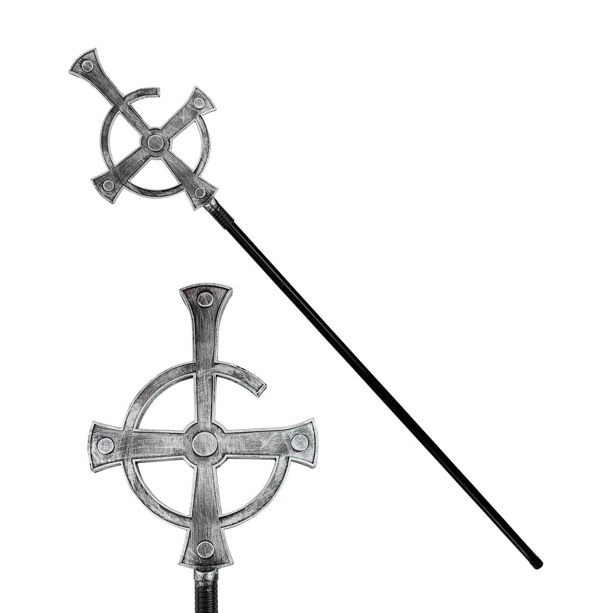 Aggiungi un accessorio di grande effetto al tuo costume di Halloween con questo bastone pieghevole con croce. Con una lunghezza di 1,45 m e una finitura nera e argentata, è perfetto per sacerdoti, vampiri o altri costumi a tema.