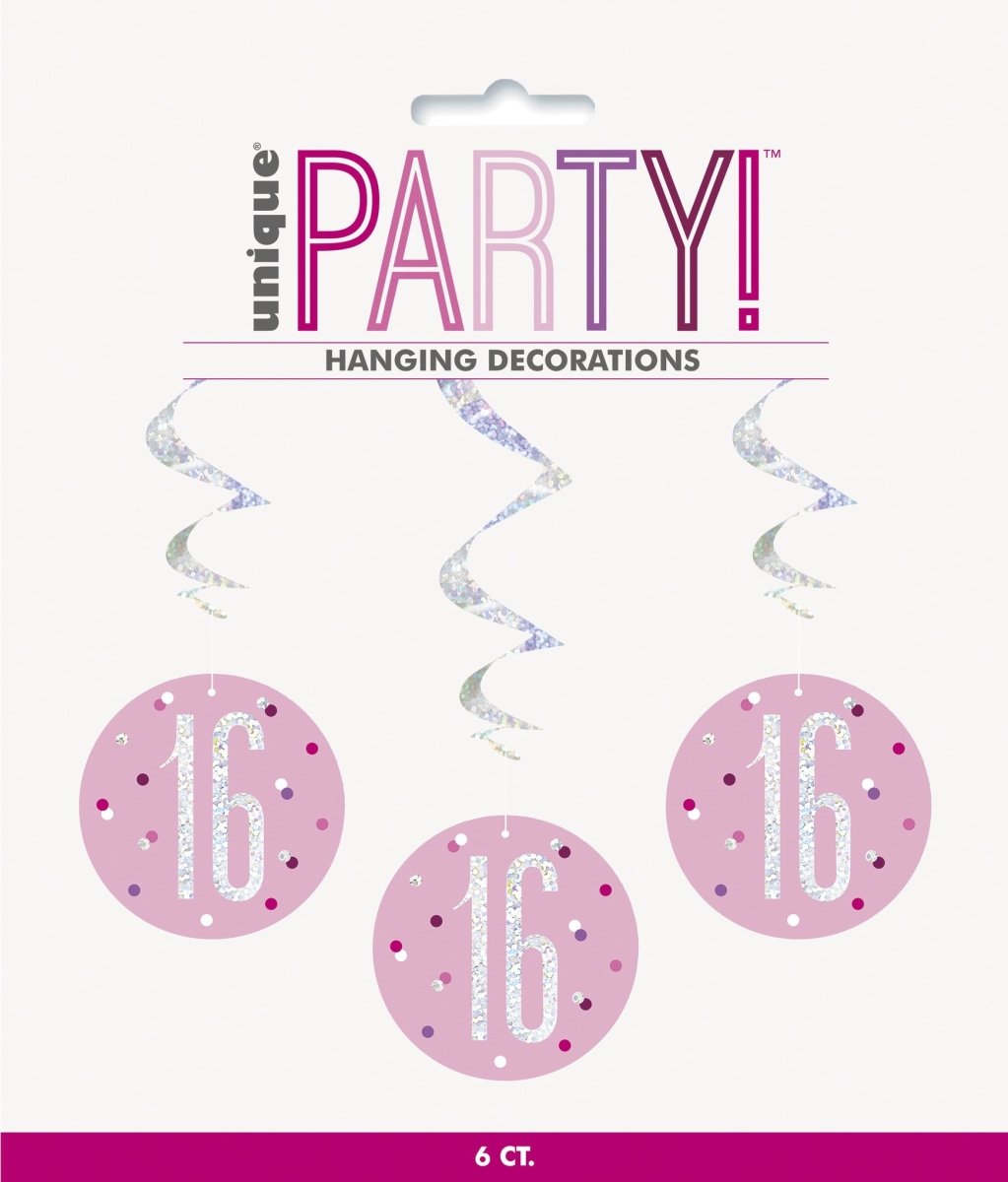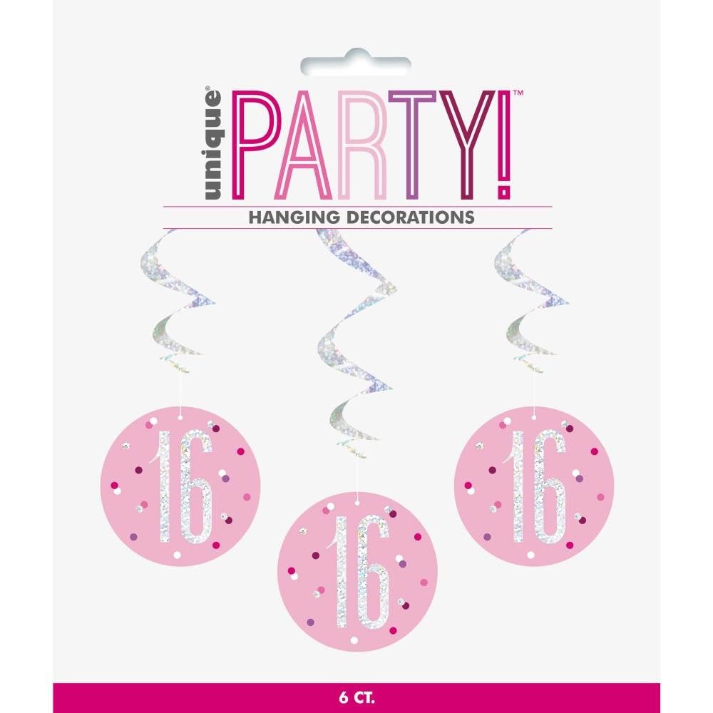 Decorazione da appendere 16 anni rosa 81 cm 6 pezzi