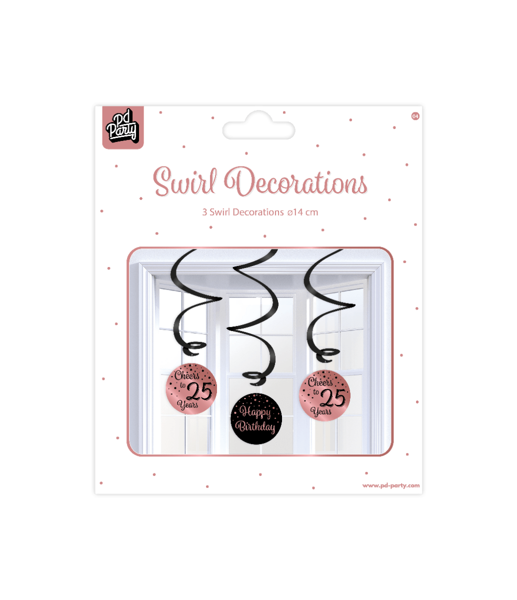Decorazione da appendere 25 anni Buon Compleanno Nero Rosa 17cm 3 pezzi