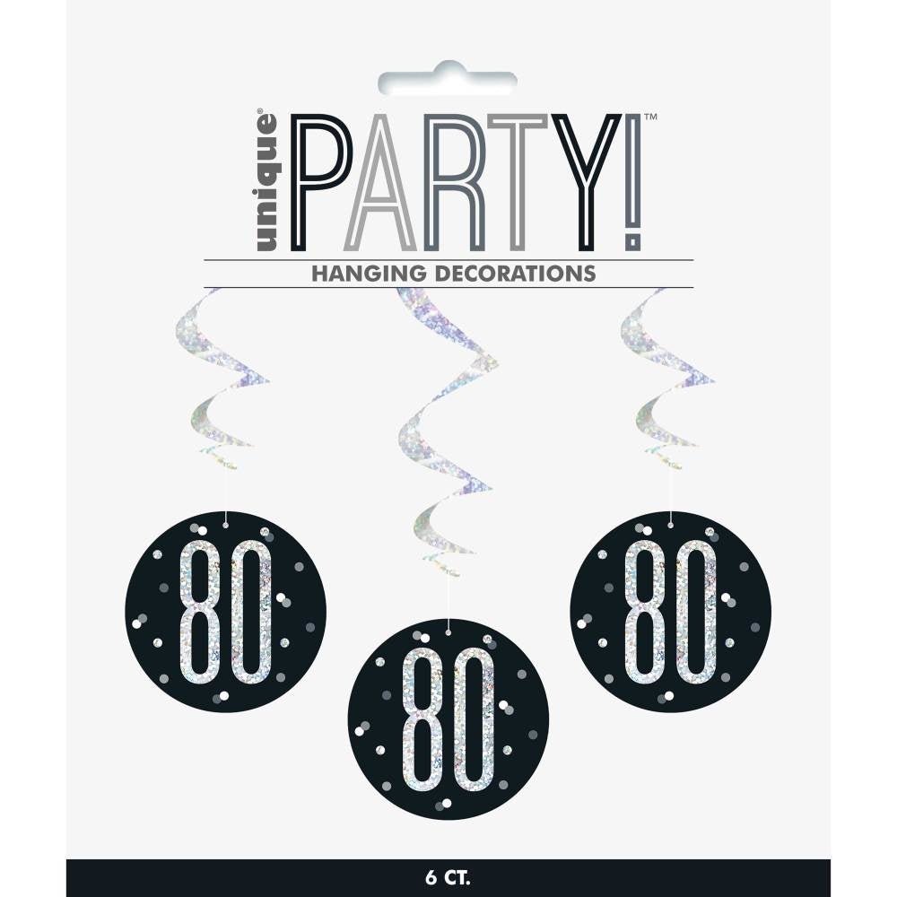 Decorazione da appendere 80 anni nera 81 cm 6 pezzi