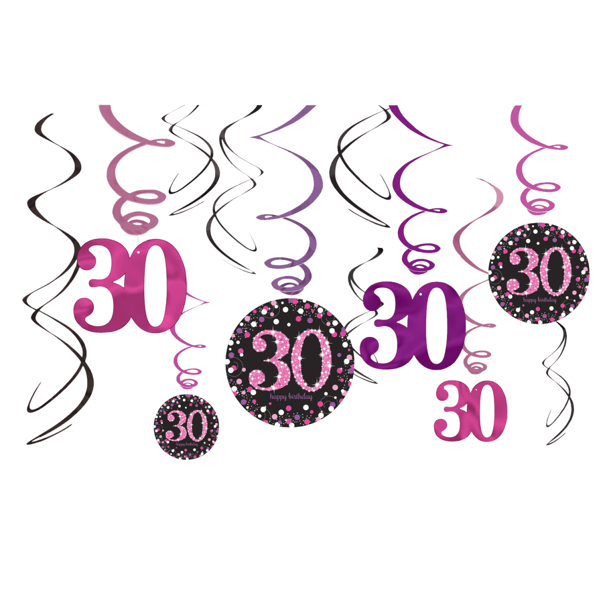 Decorazione appesa 30 anni 61cm Buon compleanno rosa 12 pezzi