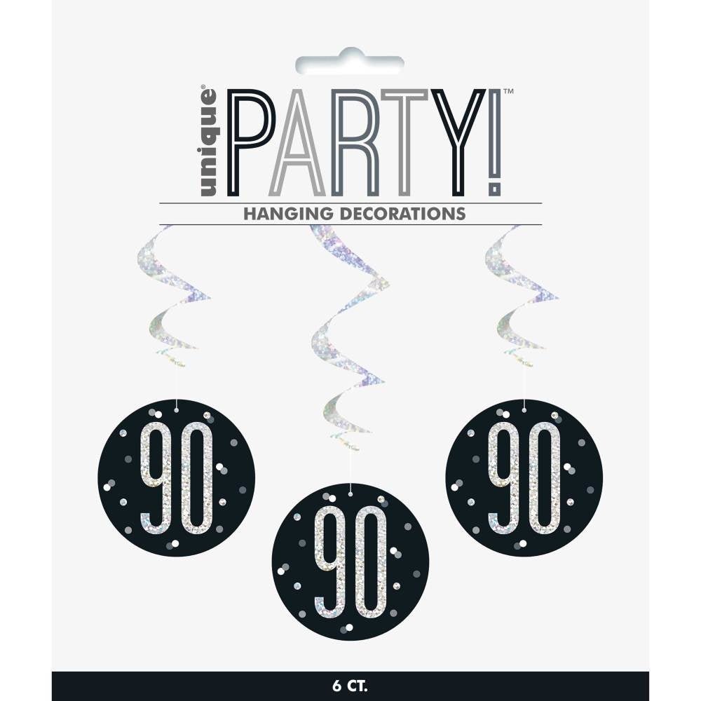 Decorazione da appendere 90 anni nero 81 cm 6 pezzi