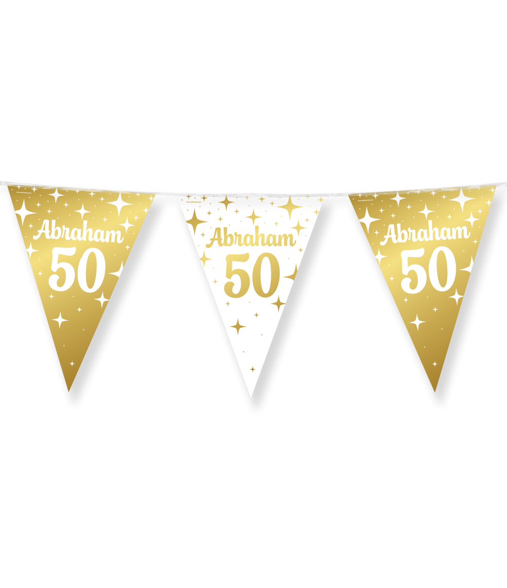 Le bandiere party fantasia in carta stagnola - Abraham 50 possono essere perfettamente combinate con i nostri palloncini coordinati e con altri articoli per feste del nostro vasto assortimento, in modo da creare senza sforzo un'atmosfera festosa ed elegante.