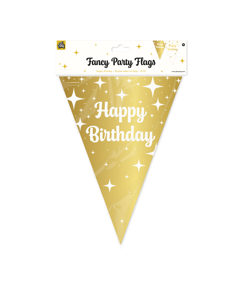 Completa qualsiasi festa con questa festosa bandiera Party foil. La linea di bandiere ha una lunghezza di ben 10 metri, è realizzata in robusto foglio di alluminio e stampata su entrambi i lati. Di conseguenza, i colori e le stampe risultano sempre perfetti, indipendentemente dal punto in cui appendi la ghirlanda.