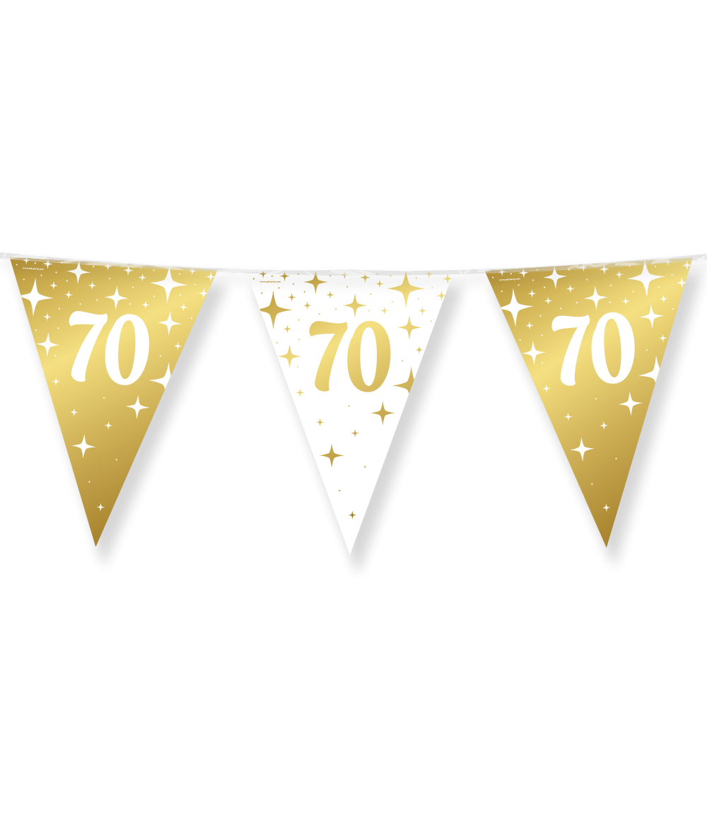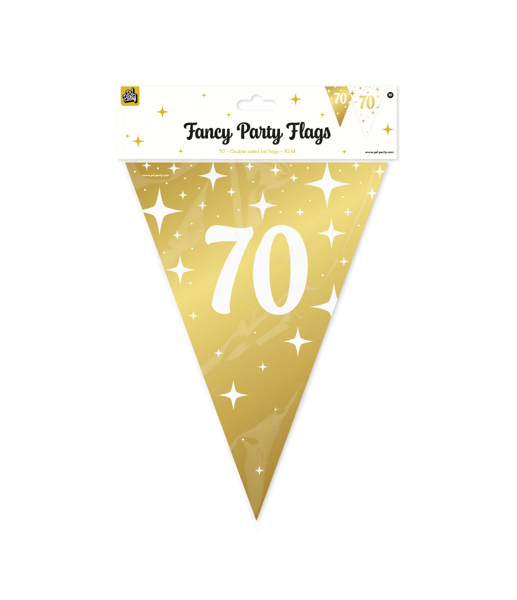 Il foglio di bandiere per feste di lusso - 70 può essere perfettamente abbinato ai nostri palloncini coordinati e ad altri articoli per feste del nostro vasto assortimento, in modo da creare senza sforzo un'atmosfera festosa e di stile.