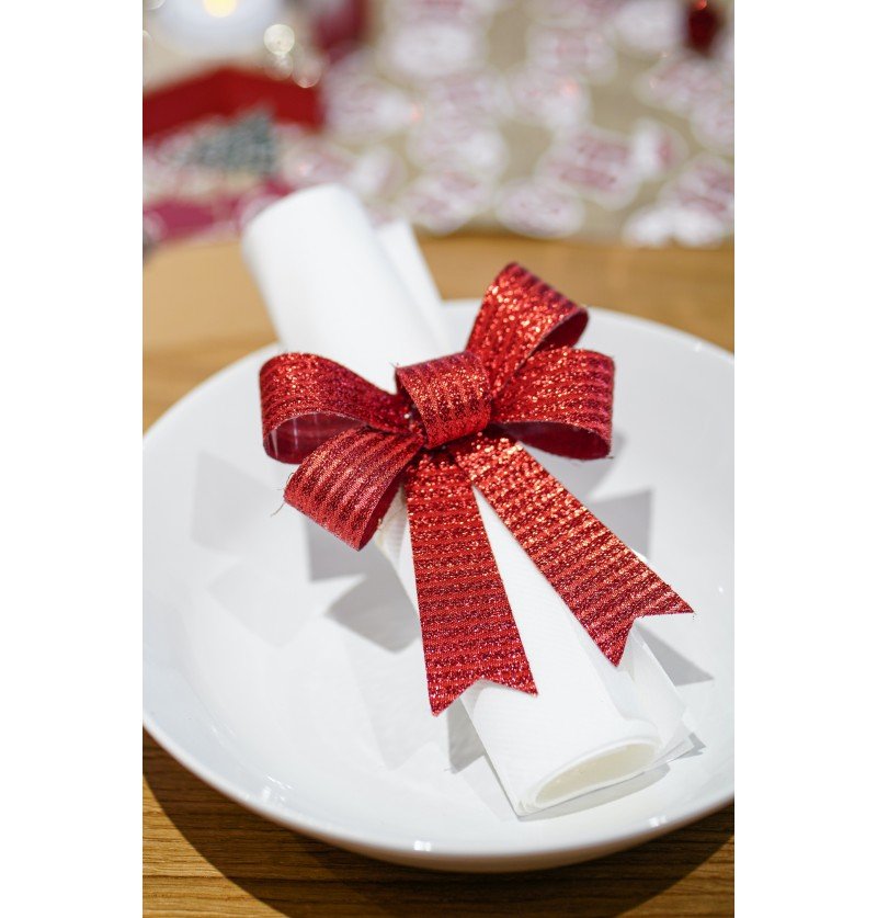 Fiocco rosso a strisce glitterate 10cm 3pz