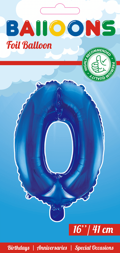 Palloncino in foil Figura 0 Blu 41cm con cannuccia
