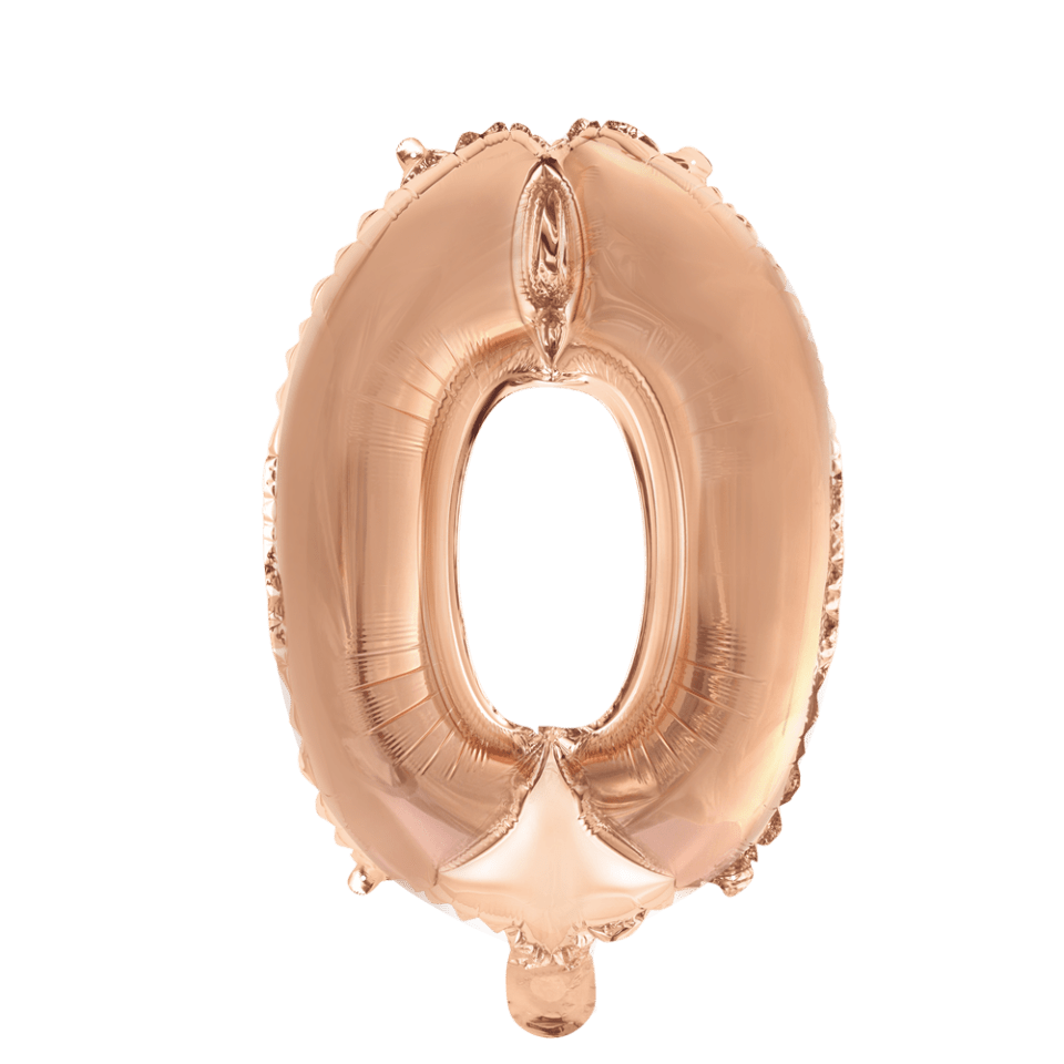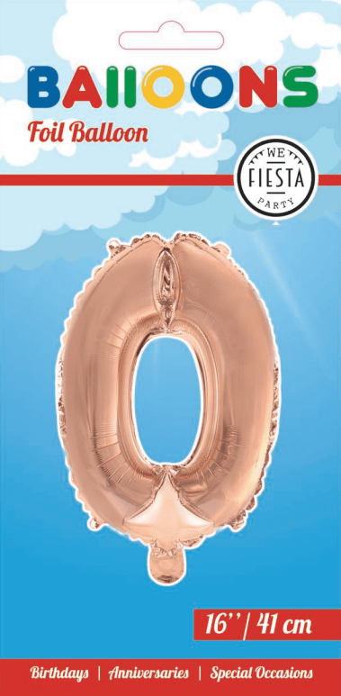 Palloncino in foil Figura 0 Oro Rosa 41 cm con cannuccia