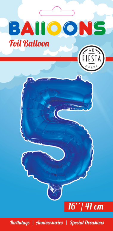 Palloncino in foil Figura 5 Blu 41cm con cannuccia