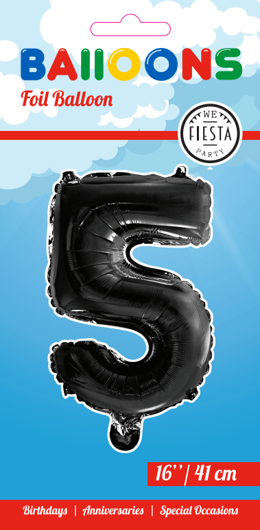Palloncino in foil Figura 5 Nero 41cm con cannuccia