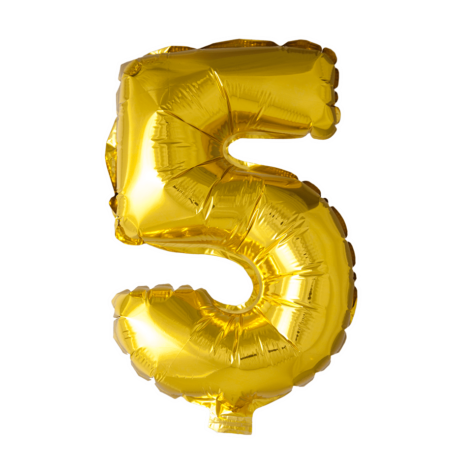 Palloncino in foil Figura 5 Oro 41cm con cannuccia