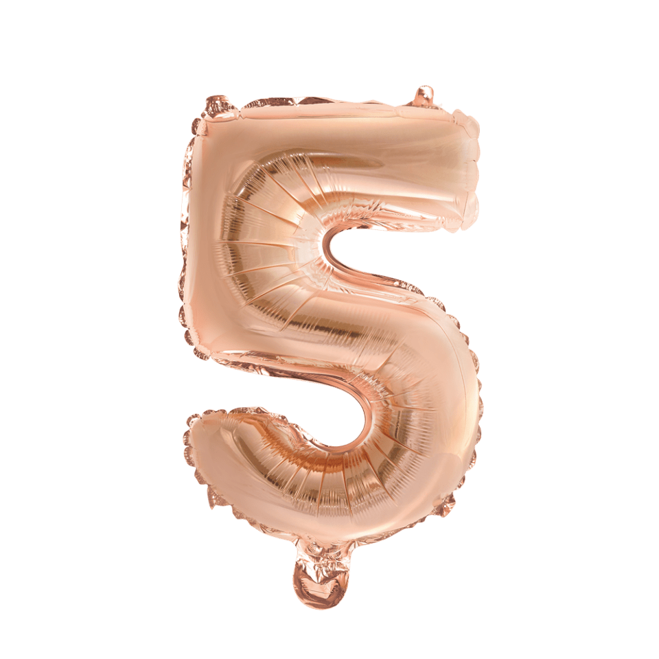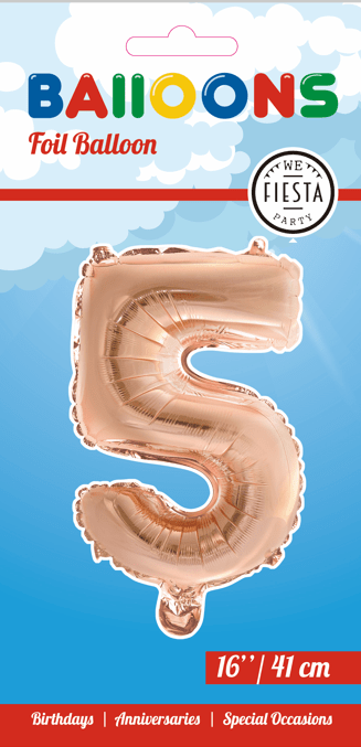 Palloncino in foil Figura 5 Oro Rosa 41 cm con cannuccia