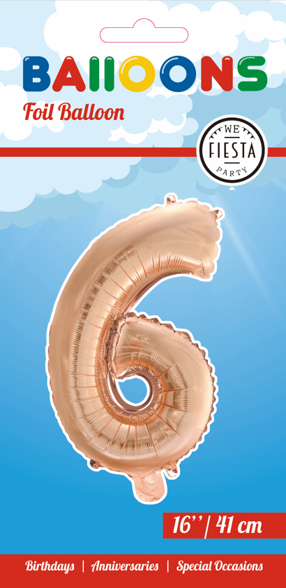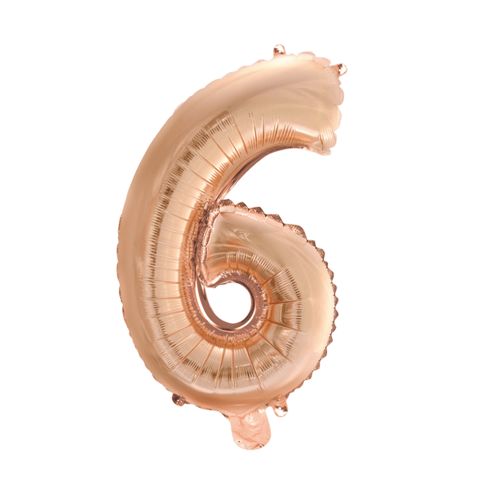 Palloncino in foil Figura 6 Oro Rosa 41 cm con cannuccia