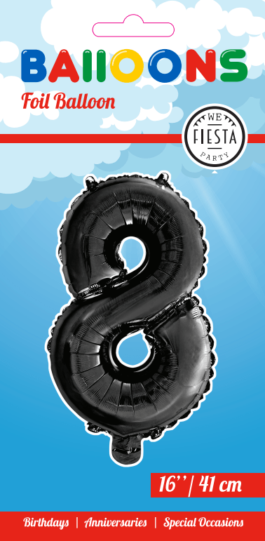 Palloncino in foil Figura 8 Nero 41cm con cannuccia