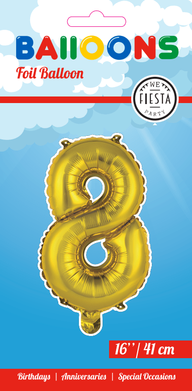 Palloncino in foil Figura 8 Oro 41cm con cannuccia