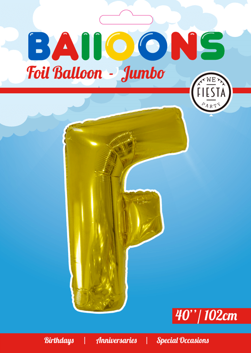 Palloncino in foil Lettera F Oro XL 102cm vuoto