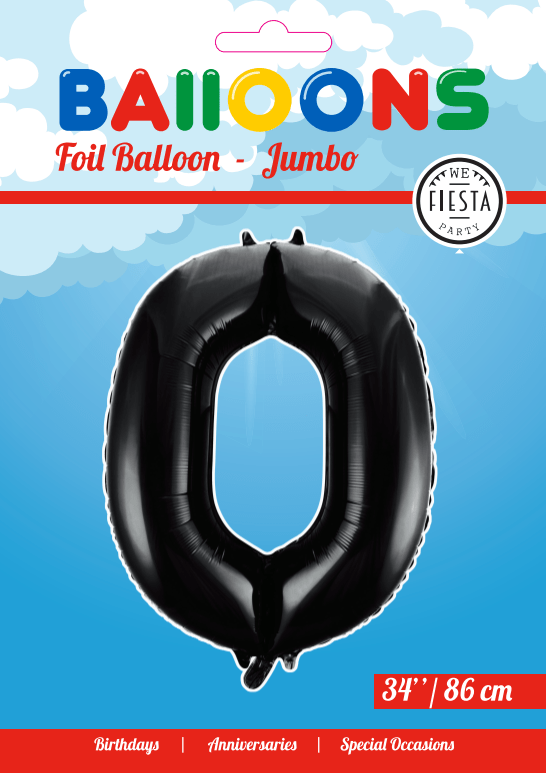 Palloncino Foil Figura 0 Nero XL 86cm vuoto