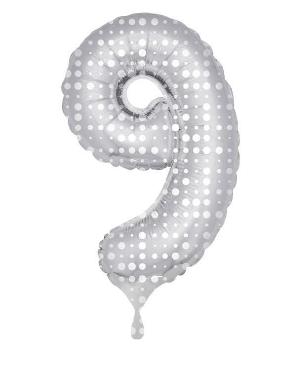 Palloncino Foil Figura 9 Silver Dots XL 86cm vuoto