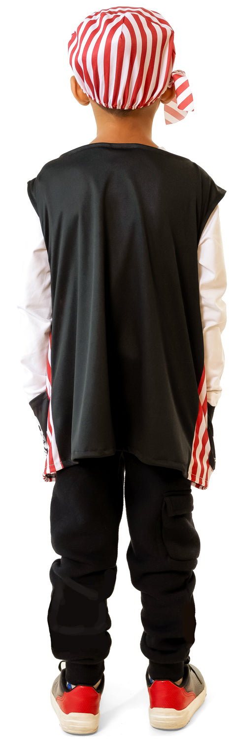 Ehi, amico! Questo Set di travestimenti da pirata trasforma ogni bambino in un tenace cacciatore di tesori, pronto per l'avventura in alto mare. Perfetto per feste per bambini, feste in maschera e carnevale. Il set comprende un vistoso gilet da pirata e una bandana coordinata.