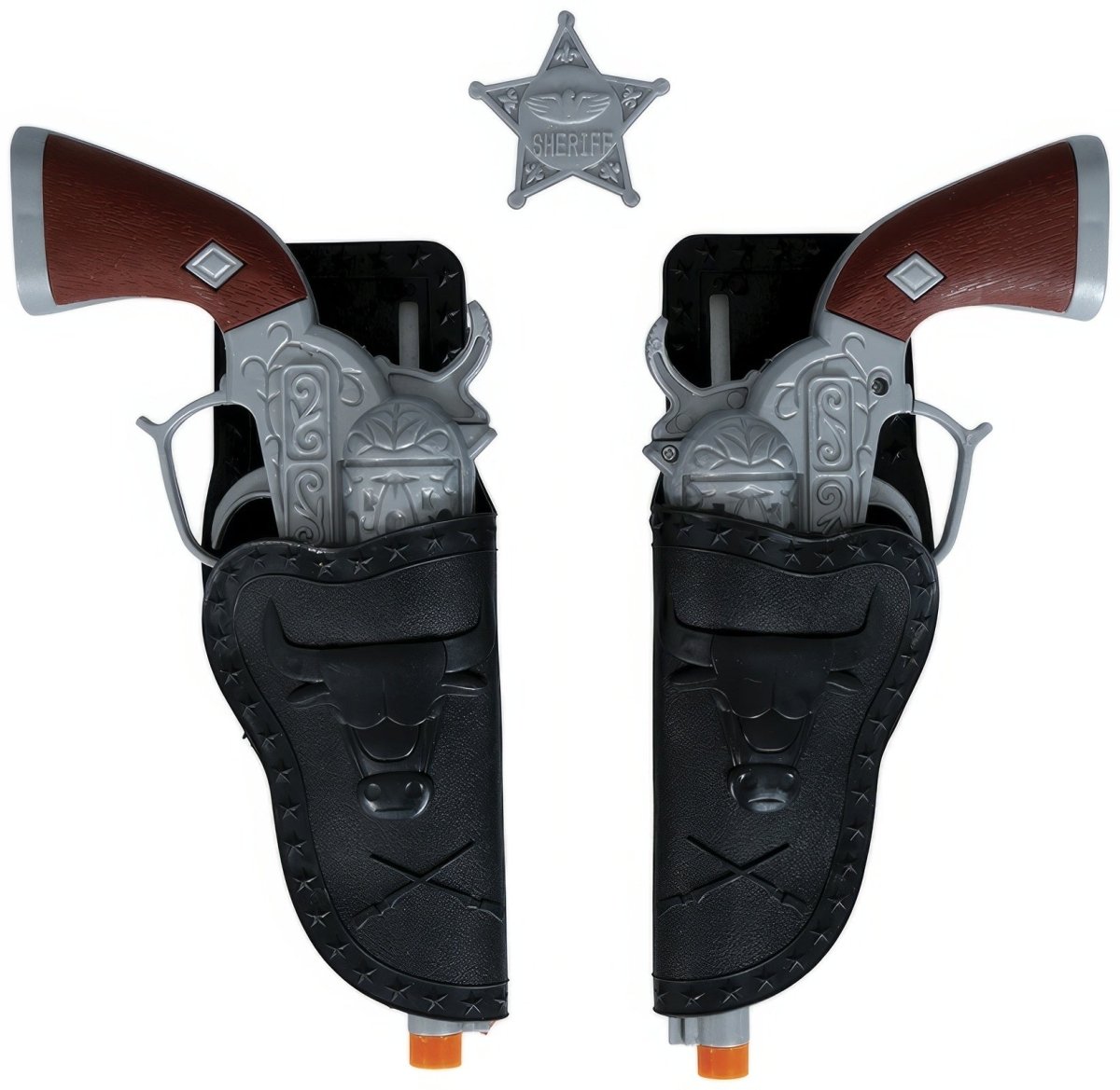Contenuto: Cintura, fondina, pistola - Colore: Nero, Argento - Ignifugo: Si - Materiale: Poliestere, PVC