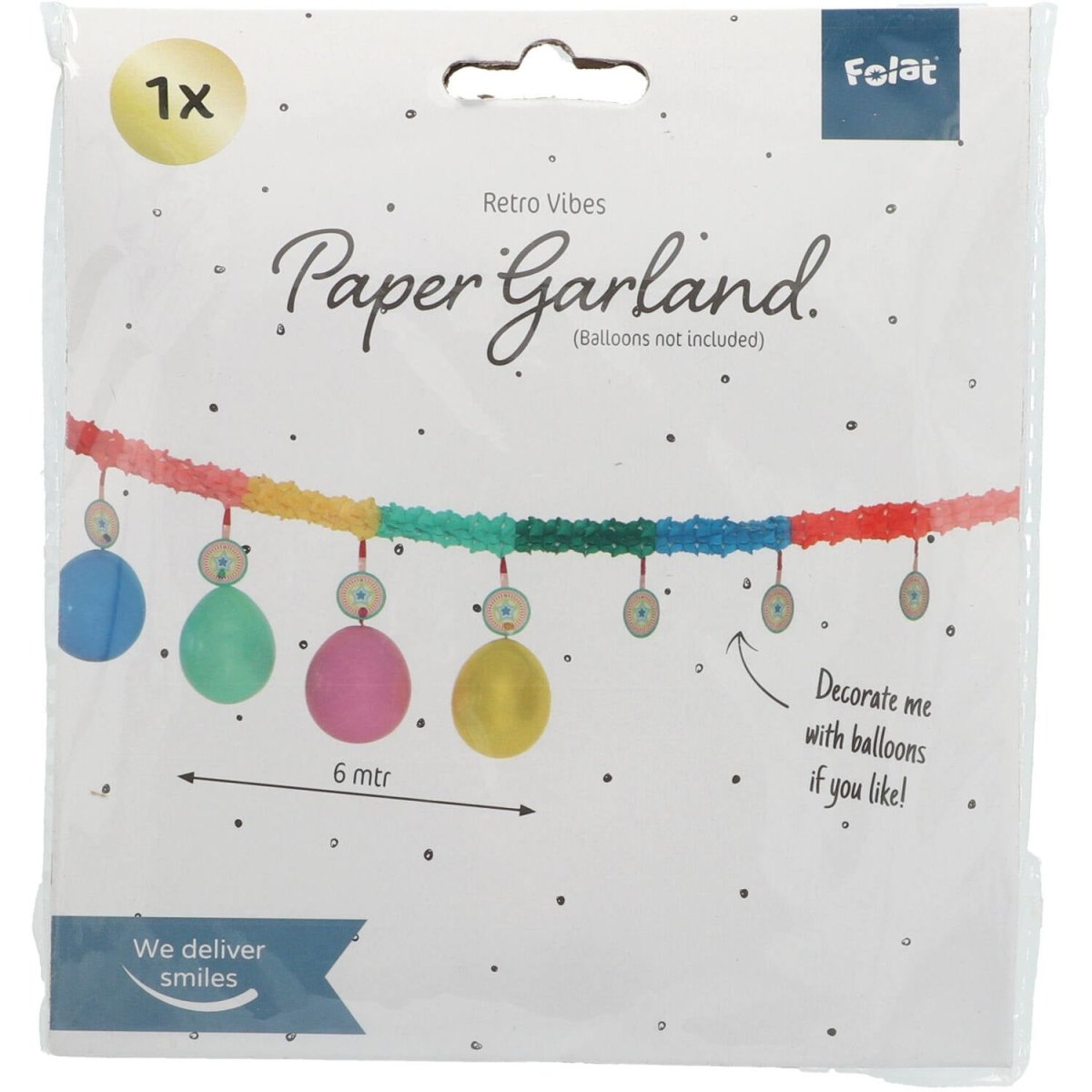 L'imbracatura con pendenti Retro - 6 metri. Contenuto: 1 ghirlanda. Colore: Multicolore. I palloncini non sono inclusi. Da utilizzare, ad esempio, durante le seguenti occasioni di festa: Compleanno, Festa per bambini e Anniversario. Questa ghirlanda è lunga 6 metri. L'articolo è realizzato in carta.