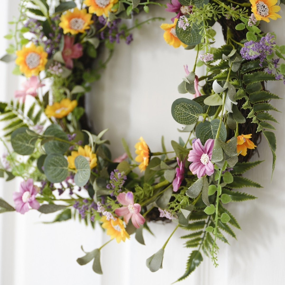 Dai il benvenuto alla primavera con questa bellissima ghirlanda floreale, la decorazione perfetta per accogliere gli ospiti nella tua casa.
