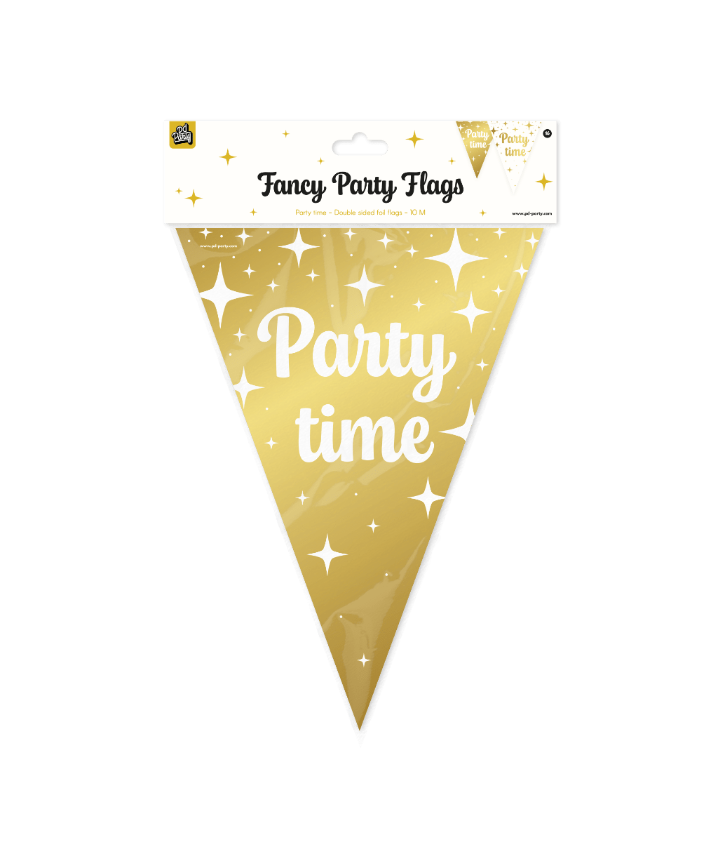 Le bandiere per feste di fantasia - Party time possono essere perfettamente combinate con i nostri palloncini coordinati e con altri articoli per feste del nostro vasto assortimento, in modo da creare senza sforzo un'atmosfera festosa e di stile.