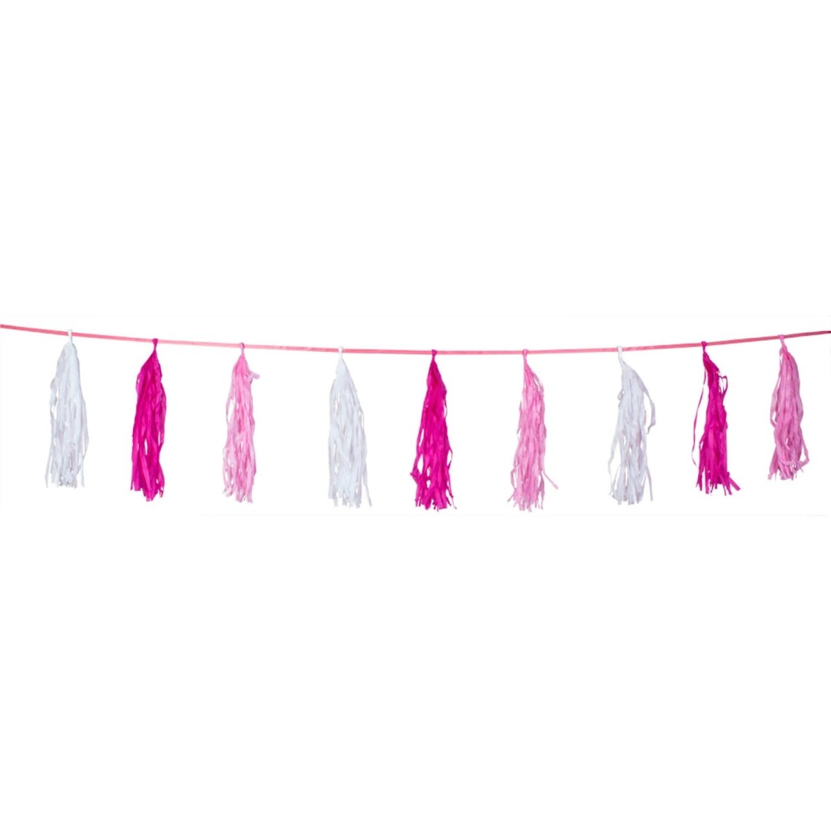 Ghirlanda di nappe rosa chiaro/bianco 3m