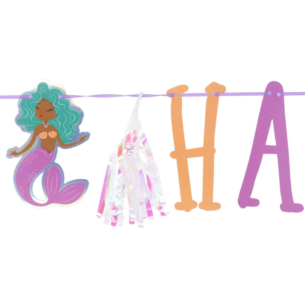 Per ogni compleanno da sirena! Set ghirlanda di lettere - Mermaid Magic - 1,5 metri. Contenuto: 1 ghirlanda di lettere in 2 parti. Da utilizzare ad esempio durante le seguenti feste/occasioni di festa: Festa per bambini, Compleanno. Ora la magia si fa sentire! Questa ghirlanda è composta da due parti: una ghirlanda con il testo "HAPPY BIRTHDAY" (le lettere sono alte circa 14 cm) con una sirena e un fiocco in lamina iridescente su entrambi i lati; tra le due parole c'è anche una sirena. Sulla seconda ghirlanda è appeso il testo "MERMAID MAGIC" (le lettere sono alte circa 14 cm) con una conchiglia iridescente e una nappina in lamina iridescente ai lati. Grazie alla tecnica di stampa a caldo utilizzata, le conchiglie iridescenti brillano davvero! Le lettere e le conchiglie sono stampate su entrambi i lati. Tutte le parti possono essere fatte scorrere avanti e indietro sul nastro viola. I nastri di entrambe le ghirlande sono di 2,5 metri lang.Deze la linea di bandiera appartiene alla collezione Mermaid Magic di