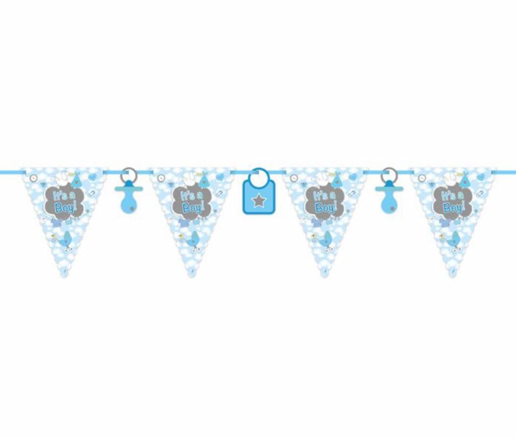 Bandiera It's a Boy - 6 metri. Contenuto: 1 linea di bandiera. Colore: blu. Da utilizzare, ad esempio, durante le seguenti occasioni di festa/festa: Nascita di un bambino. Questa ghirlanda è lunga 6 metri. Il filo della bandiera è di carta.