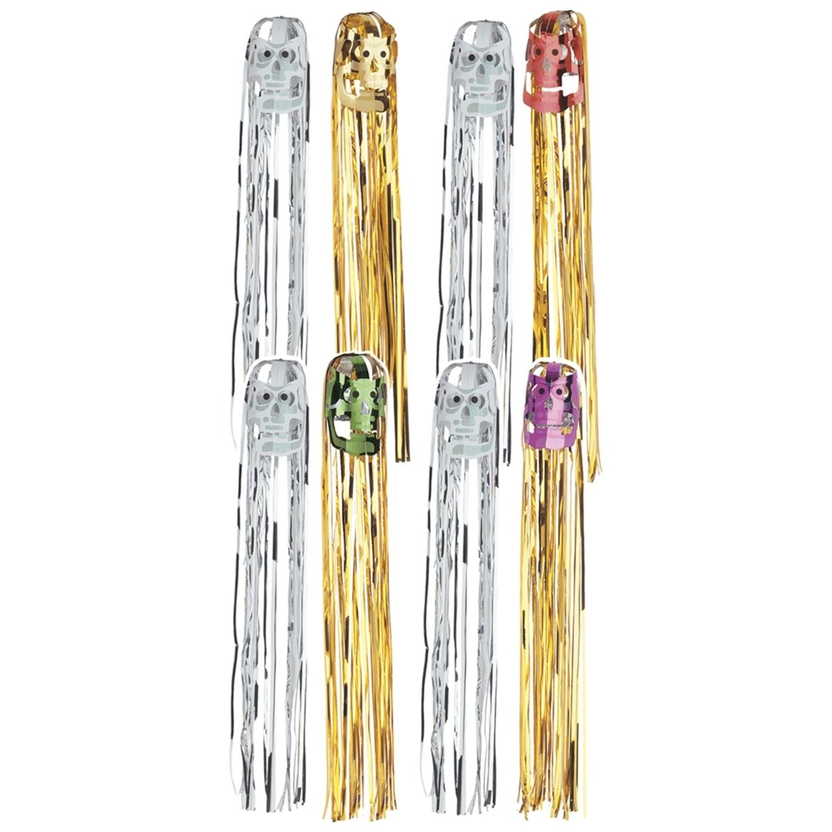 Dai alla tua festa di Halloween un'atmosfera spettrale e festosa con queste ghirlande di 3 teschi. Il design argentato/oro rende la decorazione accattivante e suggestiva.