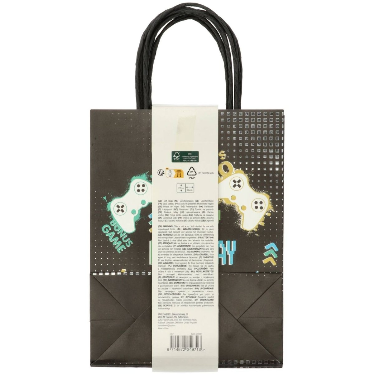 Per i punti bonus! Sacchetti regalo - Level Up - 20 x 27 cm - 6 pezzi. Contenuto: 6 sacchetti regalo. Ad esempio, da utilizzare durante le seguenti occasioni di festa: Compleanno, Festa per bambini, Festa per adolescenti. Divertente da inserire nei regali per i compleanni dei giocatori e ottimo da regalare alla fine di una festa di gioco. Su un lato del sacchetto c'è scritto "Happy Birthday" e alcuni termini del gioco. Sull'altro lato c'è scritto "Level Up". La borsa misura 20 cm di larghezza, 27 cm di altezza (escluse le dimensioni della borsa). maniglia), circa 38 cm (inclusa la maniglia). manico) e 10 cm di profondità. Queste borse regalo appartengono alla nostra collezione Level Up. Una collezione di tendenza con accenti argentati che ti permette di organizzare un vero e proprio party di gioco. Creato da un giocatore per i giocatori. Andiamo! Questo articolo è realizzato con carta FSC.